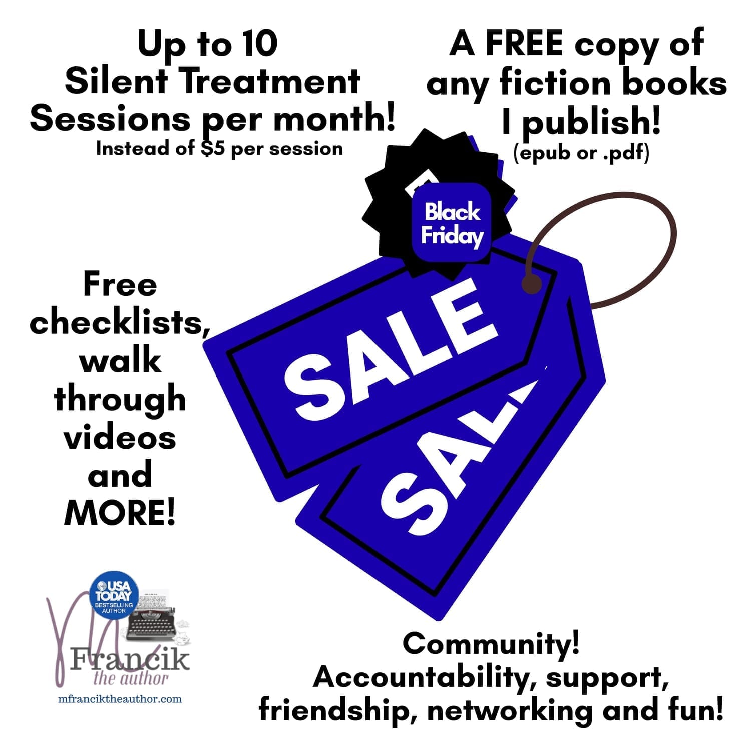 One facet of the membership will be my own version of a "silent" program! For now, I'm calling it, "Silent Treatment." (As an author, words and phrases can tickle my funny bone. Silent Treatment tickles me. I'm not entirely sure why, but it does! LOL)