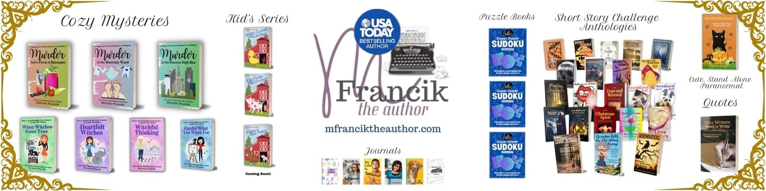 My name is Michelle and I'm an author, I host Short Story Writing Challenges, I create printables like journals, calendars, posters, checklists, ebooks, bookmarks, puzzle books and more. I write mostly cozy mysteries, paranormal cozies, children's chapter books and some non-fiction. I do all of my own formatting, most of the editing, I create the book covers and publish the books myself. For a while now, I've been dealing with a day job that drained me mentally, physically and emotionally, as well as physical/health challenges, grief and pain. I let my writing and my creating get shoved to the back of the to do list.